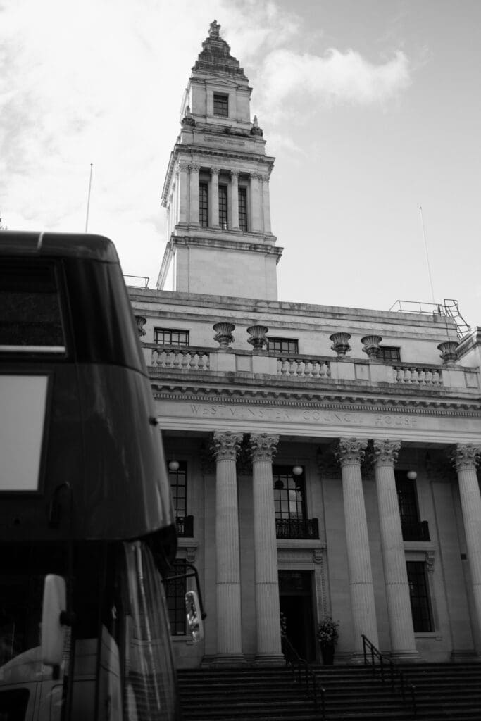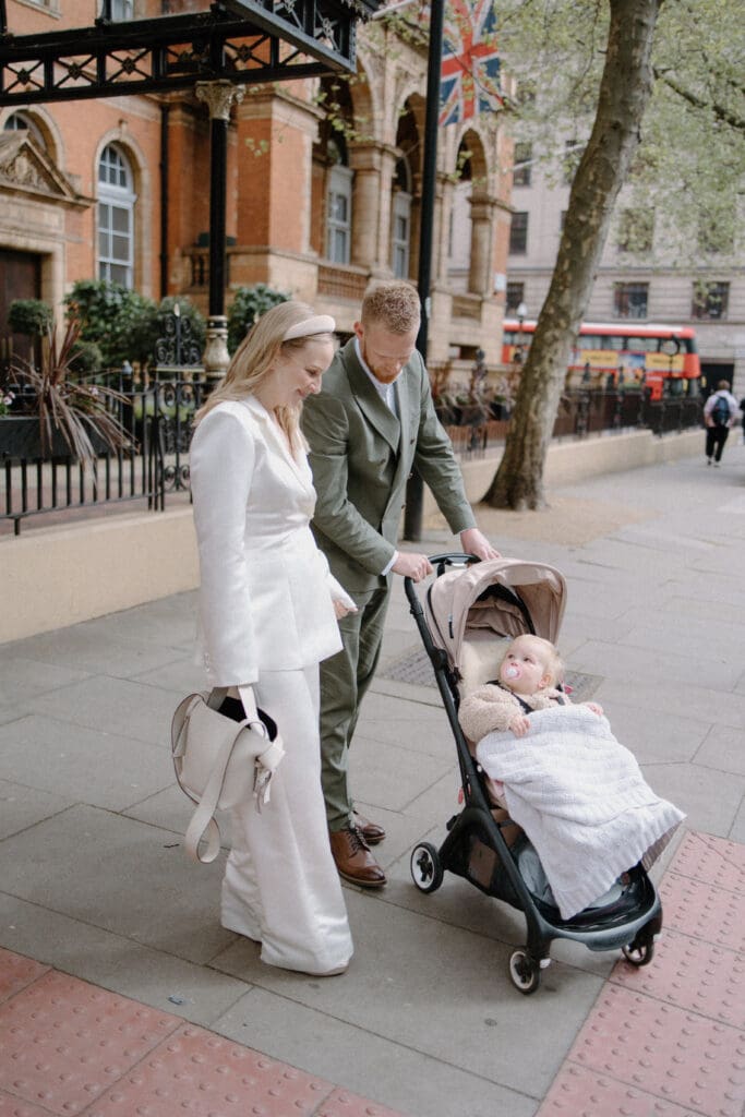 We began at The Landmark Hotel, where they met with their parents, their daughter, and Josh’s brother. The atmosphere was calm and unhurried, a lovely contrast to the busy streets outside. From there, we walked the short distance to Old Marylebone Town Hall before heading on to a nearby pub for a relaxed lunch with family.