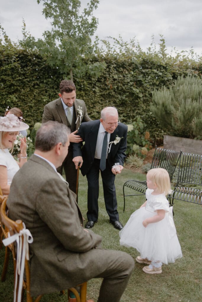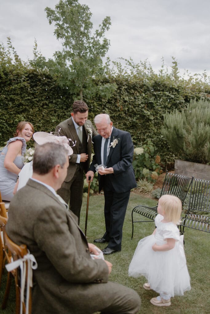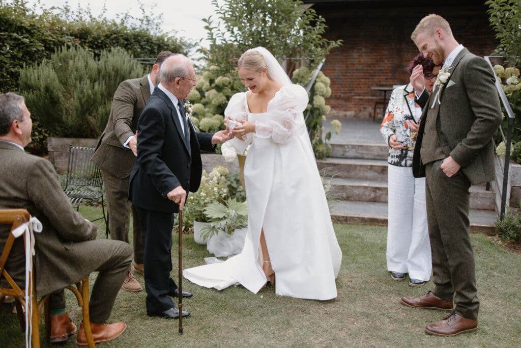Their outdoor ceremony was full of personal touches, including a moment that caught everyone by surprise. Lauren and Josh hid their wedding rings under the bride’s grandad’s chair and invited guests to check beneath their seats during the ceremony. The look on his face when he realised he was the ring bearer was incredibly special and a moment the whole family will remember.