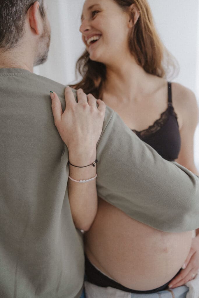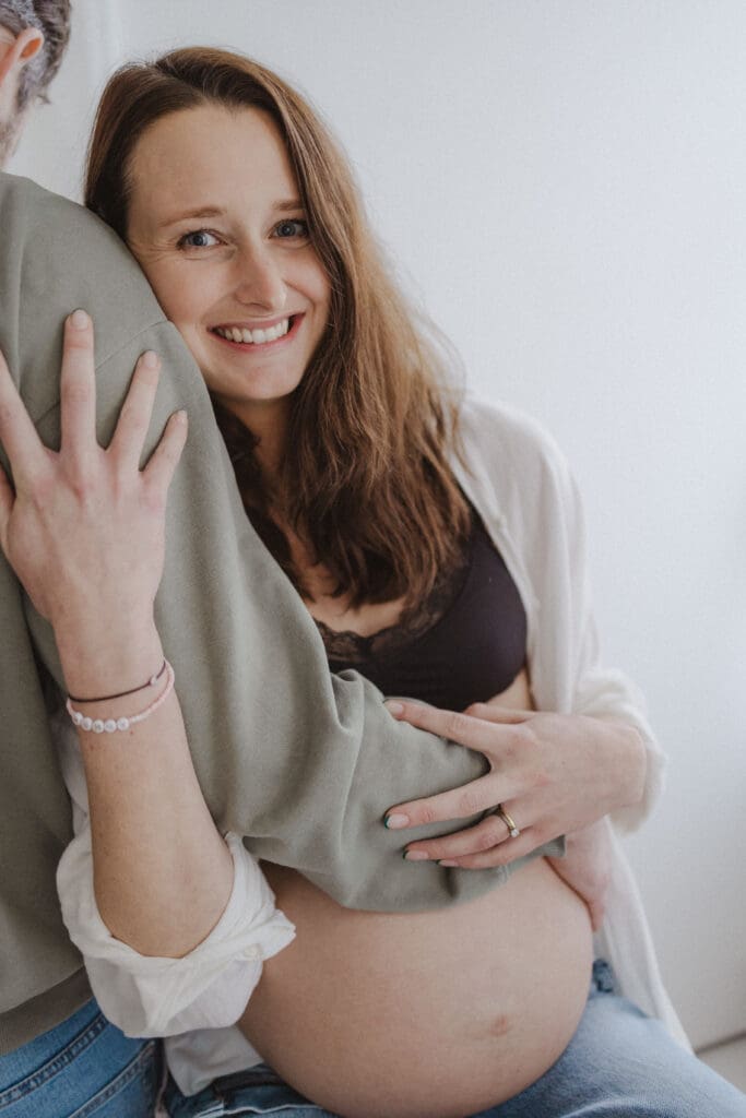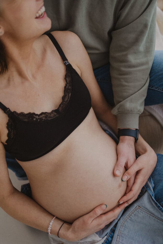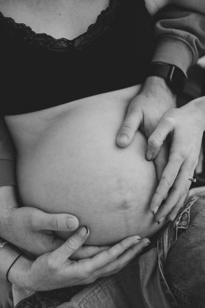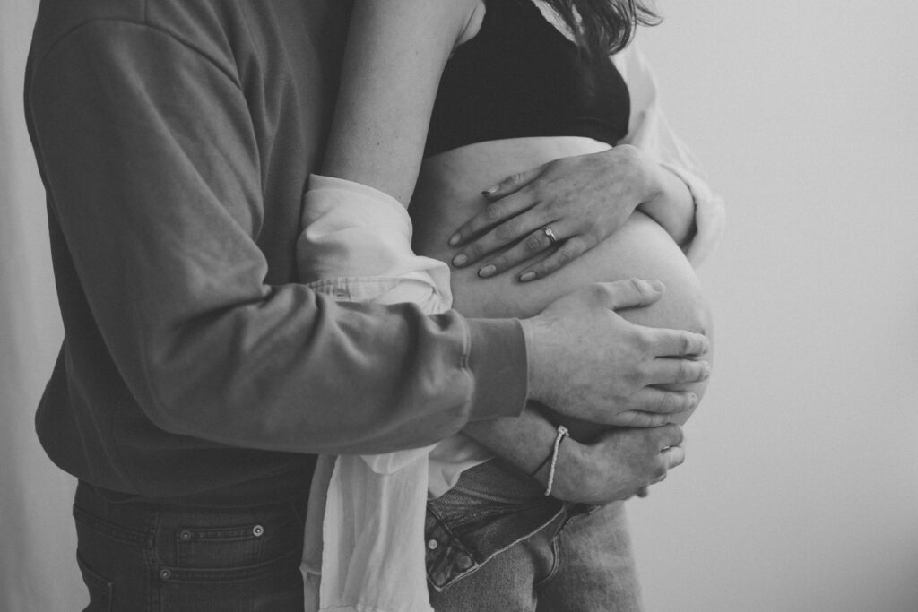 We focused mainly on mum. On her body. On the quiet strength and softness that comes with carrying a baby. Dad stepped in gently where it felt right, a hand on her back, a close cuddle, the shape of his arms framing her. He didn’t need to look at the camera to be part of the story.